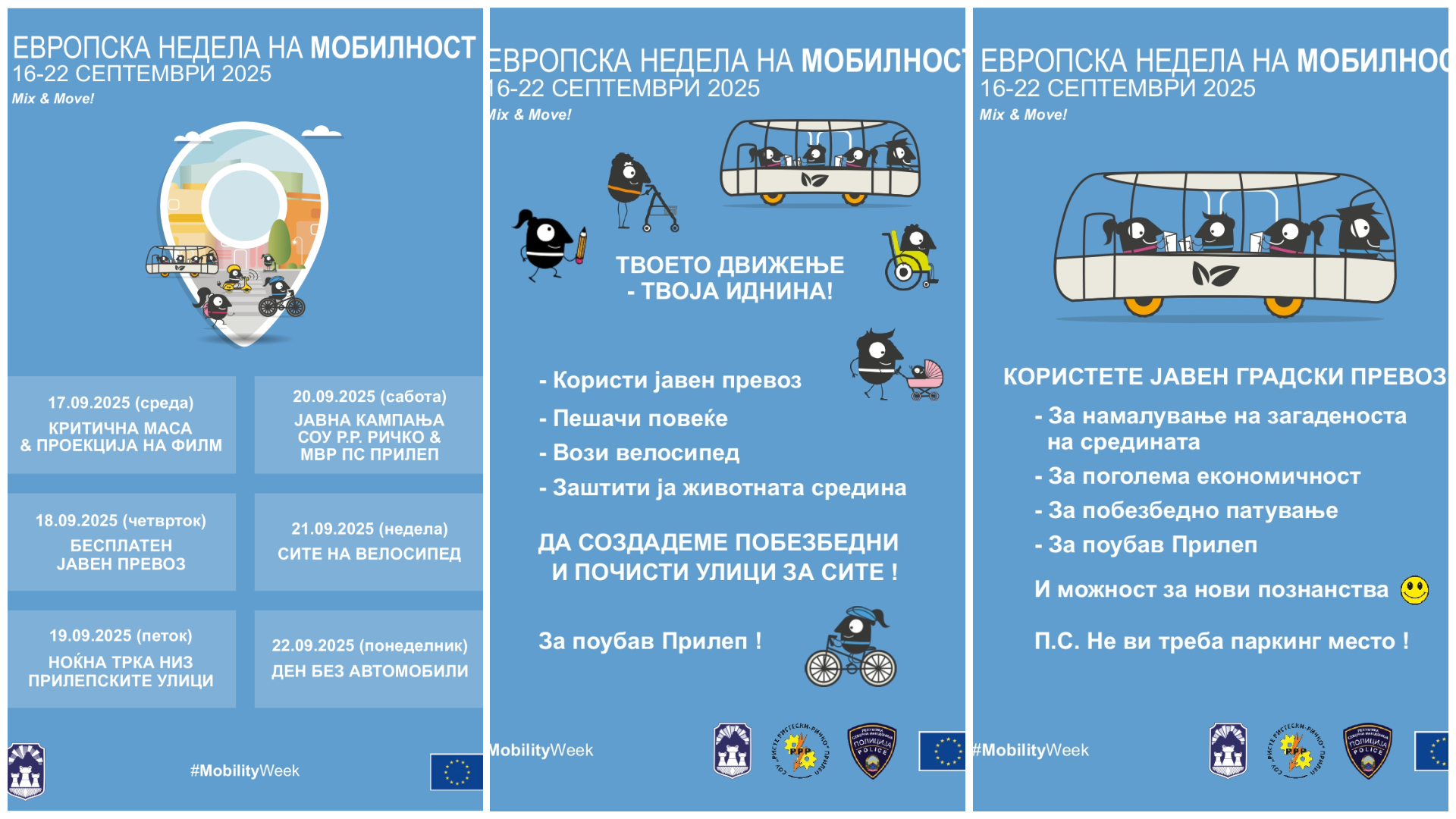 Преку различни настани – од велосипедски возења, спортски трки, едукативни работилници, бесплатен јавен превоз, па сè до „Ден без автомобили“ – Прилеп ќе испрати порака за поодржливо, поздрава и побезбедна иднина.