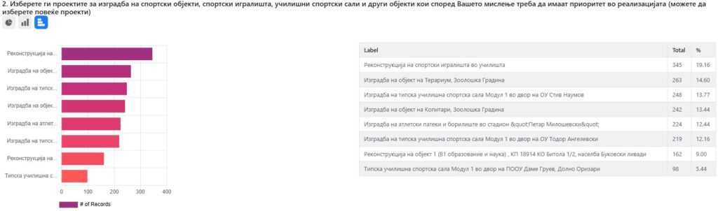 Иако овие проекти се на врвот на приоритетите, граѓаните исто така ја нагласија важноста на инфраструктурата и спортските терени, кои мора да бидат дел од главните проекти на општината.