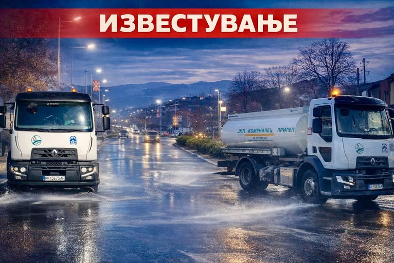 На 15.02.2026 година(недела), од 22:00 часот, се до 07:00 часот на 16.02.2026 година( понеделник), ЈКП,,Комуналец”-Прилеп, ќе извршува ноќно миење на главните сообраќајници во градов. Се замолуваат жителите кои живеат на главните сообраќајници, или жители кои паркираат во наведениот термин, истите да ги отстранат од тротоарите.