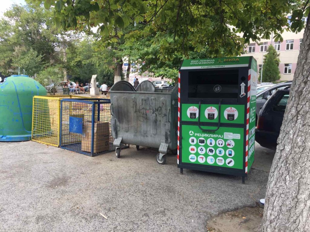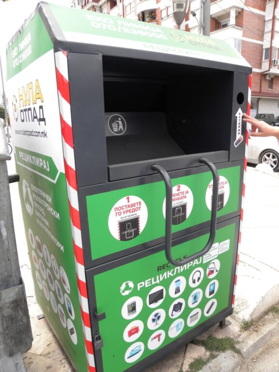 Локациите на контејнерите за собирање на ситен електронски отпад ќе бидат поставени на прометни улици за да може да се застане со автомобил и да се фрли отпадот или би биле поставени на видливи места да бидат забележани од граѓаните.