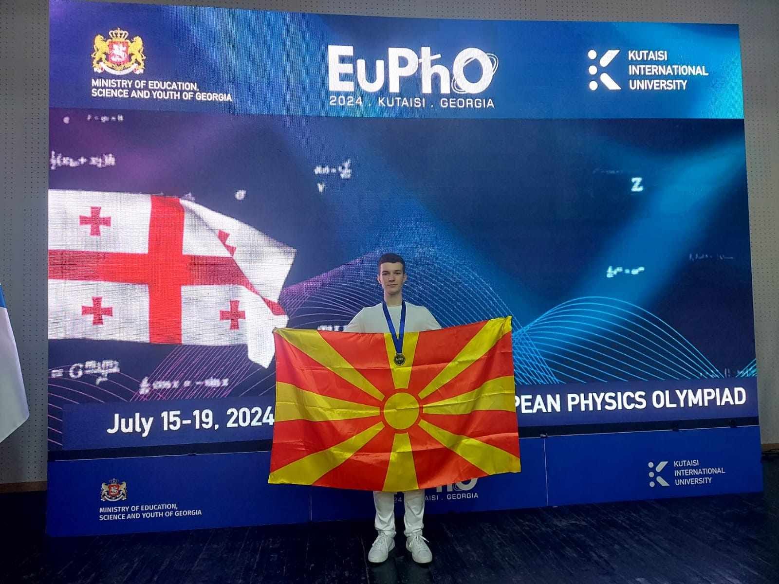 Јан Стојановски, го освои првиот ЗЛАТЕН МЕДАЛ за Македонија на 8. Европската олимпијада по физика која од 15 до 19 јули 2024 година се одржува во Кутаиси, Грузија.