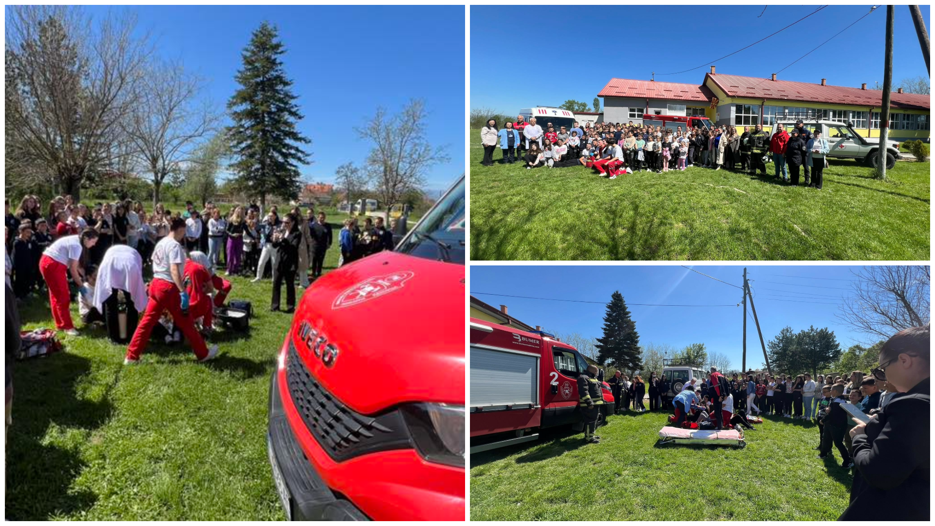 Зајакнување на степенот на реагирање во случај на елементарни непогоди продолжува во ООУ Браќа Миладиновци во с. Добрушево, каде на ден 29.04.2025 во соработка со Итна медицинска помош, Тппе Битола , СВР Битола, се одржа симулациона вежба во која се изведуваше евакуација и санирање на повредени ученици и персонал во случај на пожар.