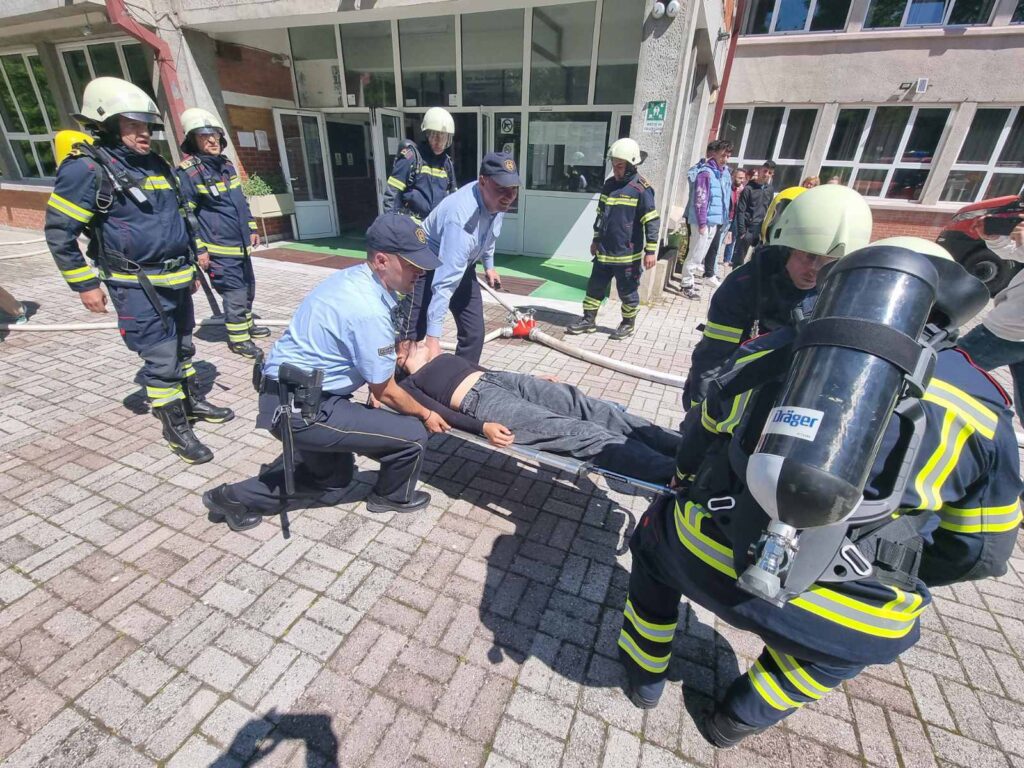 Под мотото „Начин на однесување во кризни ситуации“, вежбата имаше за цел да ги едуцира учениците за правилните чекори кои треба да се преземат при појава на пожар: организирана евакуација, совладување на паника и примена на безбедносни протоколи за излез од објектот. Учениците имаа можност практично да учествуваат во симулацијата, при што научија како да реагираат смирено, брзо и безбедно.
