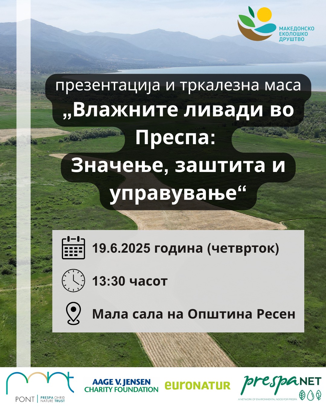 Со секоја измината година, активноста на косење на овие ливади се проширува, а денешната средба има цел да вклучи што повеќе чинители и корисници на просторот. Преку отворен формат, сите присутни ќе имаат можност да споделат согледувања, предлози и идеи за понатамошната заштита и управување со влажните ливади во Преспа.